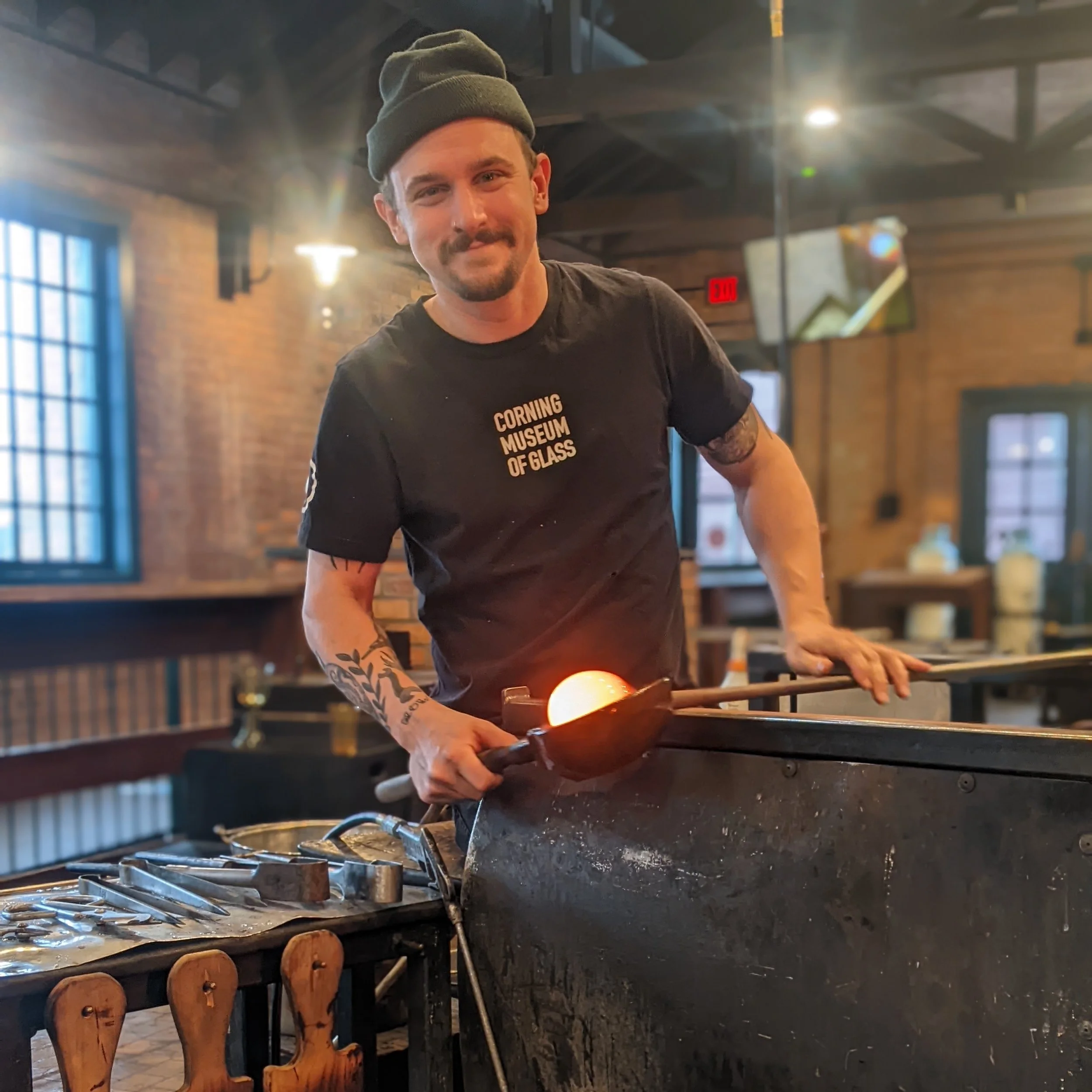 Ryan Thompson began blowing glass in 2010 at Bowling Green State University. After receiving his BFA Ryan worked at the Toledo Museum of Art as a demonstrating artist and instructor. In 2018 Ryan moved to Detroit to work as a production glassblower at The Henry Ford Museum, specializing in early American glass reproductions. During this time Ryan has continued his own artistic practice specializing in vessel making, applying traditional venetian techniques to contemporary designs.