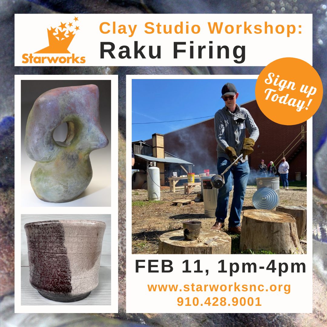 *Due to the low temperature of the Raku firing process, the finished pottery will remain porous. Therefore, all pots from this workshop will be strictly decorative. They will NOT be food safe or hold water.