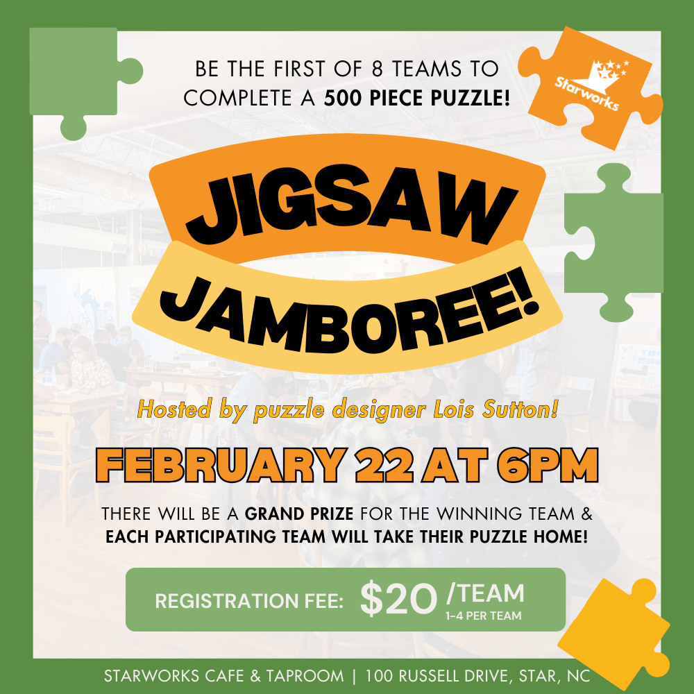 Join the Jigsaw Jamboree puzzle competition on February 22 at 6pm.