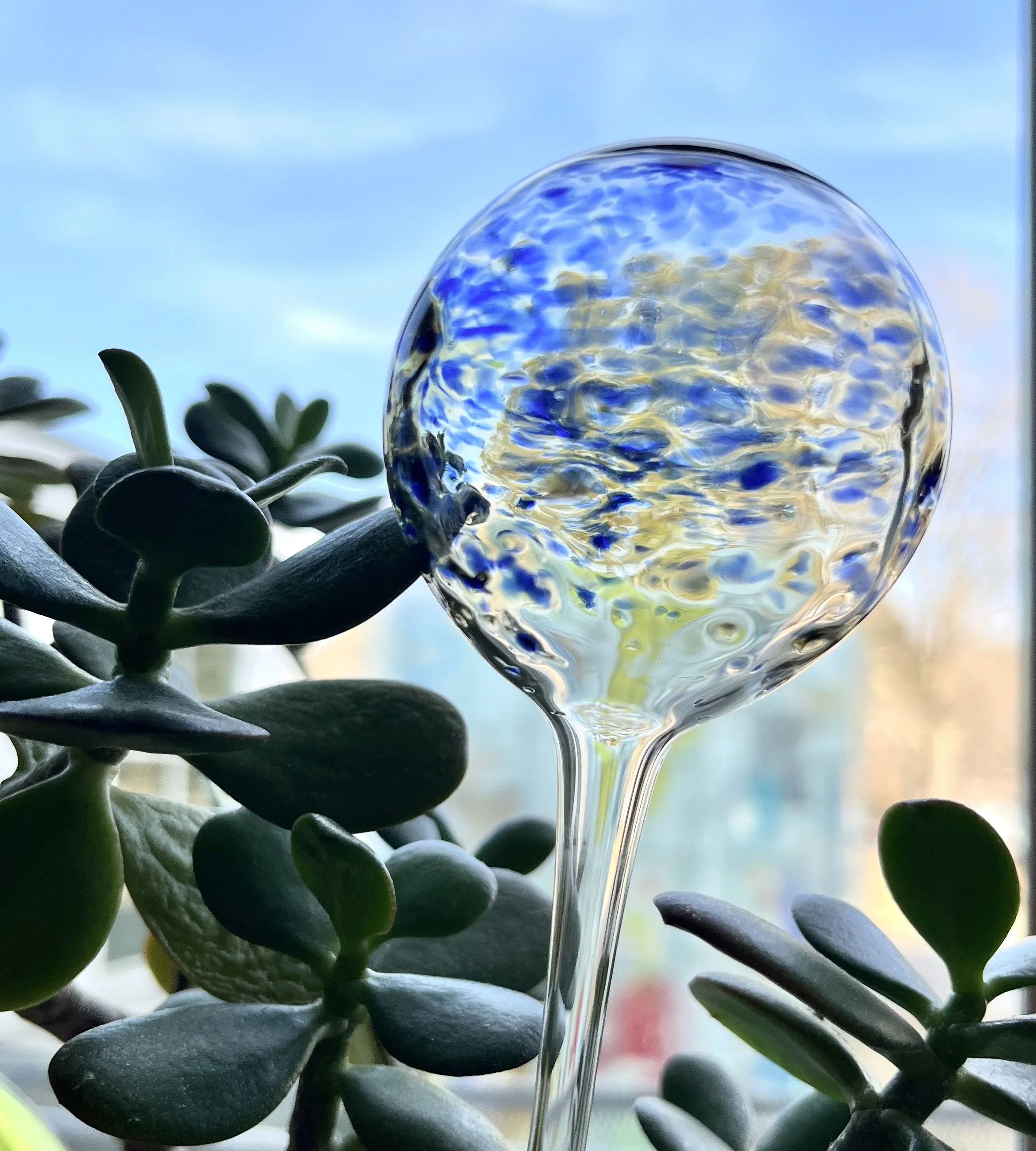 Experience the magic of working with molten glass in this hands-on flameworking workshop. In this workshop you will use an oxygen/propane torch, melting and attaching borosilicate glass rods, to create your own watering globe, perfect for houseplants.